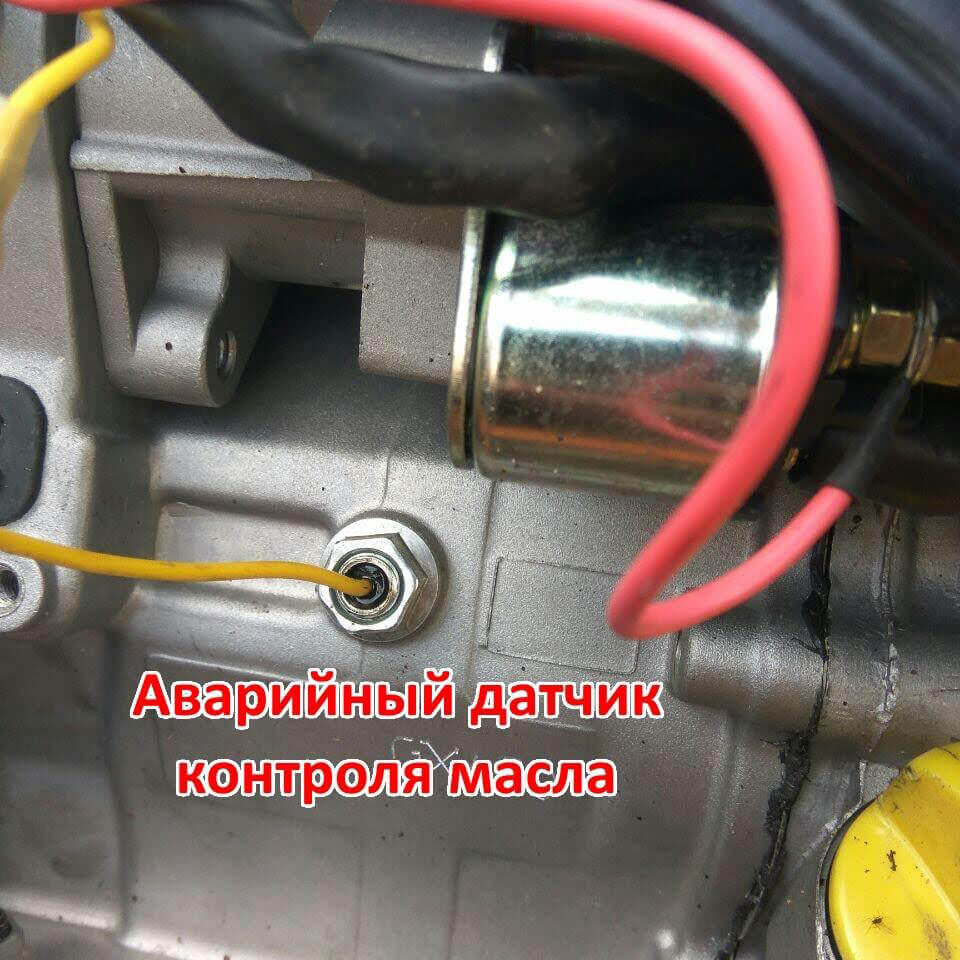 Аварийная система глушит двигатель если уровень масла опускается ниже нормы. На контрольной панели загорается световой индикатор низкого уровня масла в двигателе.