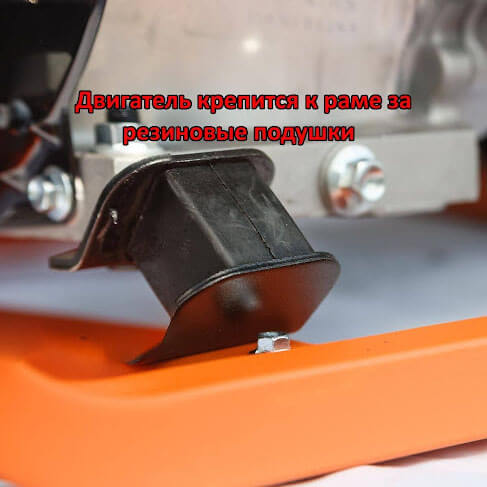 Двигатель крепится к раме за резиновые подушки