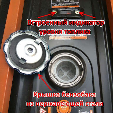 Встроенный индикатор позволяет следить за уровнем топлива. Крышка бензобака из нержавеющей стали
