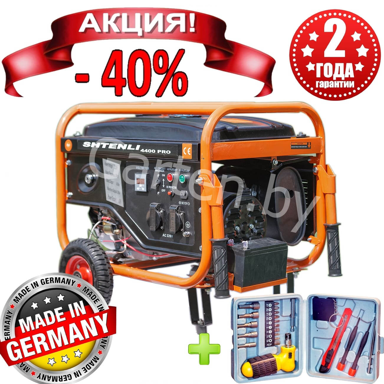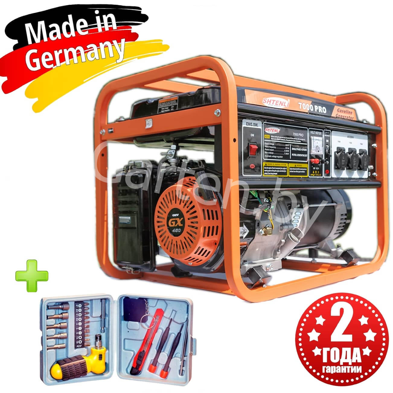 Синхронный саморегулируемый альтернатор обеспечивает поддержание напряжения в сети с высокой точностью. Высококачественный альтернатор и электрокомпоненты, совместно разработанные компаниями SHTENLI (Германия) и HONDA (Япония).